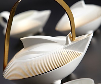 松發(fā)長期聘請?zhí)沾纱髱煆埵刂墙淌谥鞒中缕烽_發(fā)工作。騰飛,優(yōu)雅的線條,燙金的效果重現(xiàn)光影,前衛(wèi)高雅的氣質(zhì),那是未來的氣息。我國著名陶瓷藝術家張守智教授領銜設計,松發(fā)陶瓷創(chuàng)建20周年時限量發(fā)行,極具藝術收藏價值。
