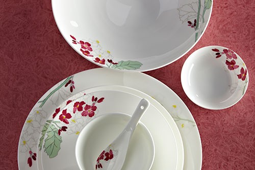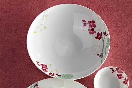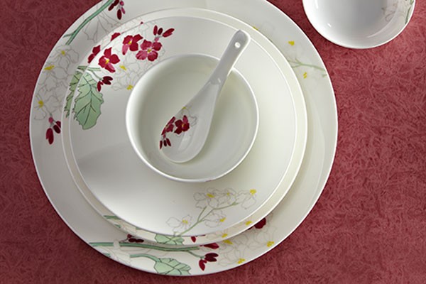 赤紅色的蘭花悠然綻放,綠葉襯托,優雅動人,細細的淺色線條,隱約勾勒遠處幽蘭的輪廓,若隱若現。